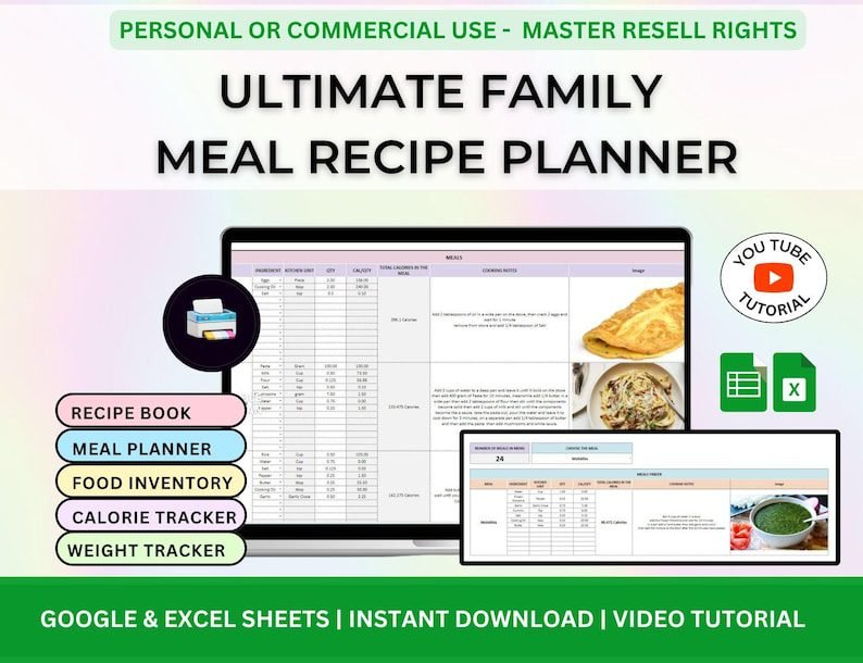 MRR/PLR Meal Planner Spreadsheet | DFY Passive Income Instant Download Digital Download | PLR Google Sheet