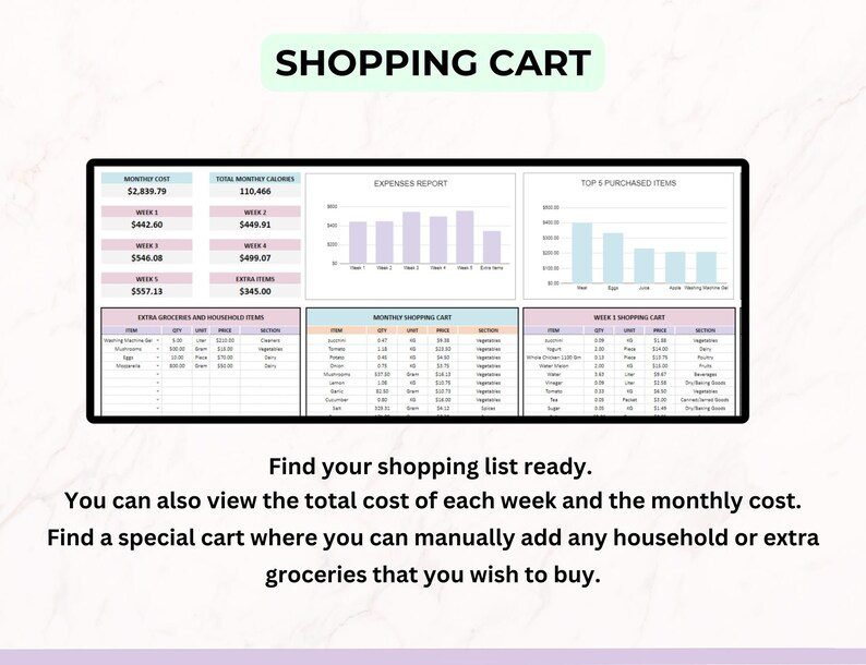 Keep track of your spending in real time. The shopping cart section automatically tallies totals, helping you stay within budget while shopping.