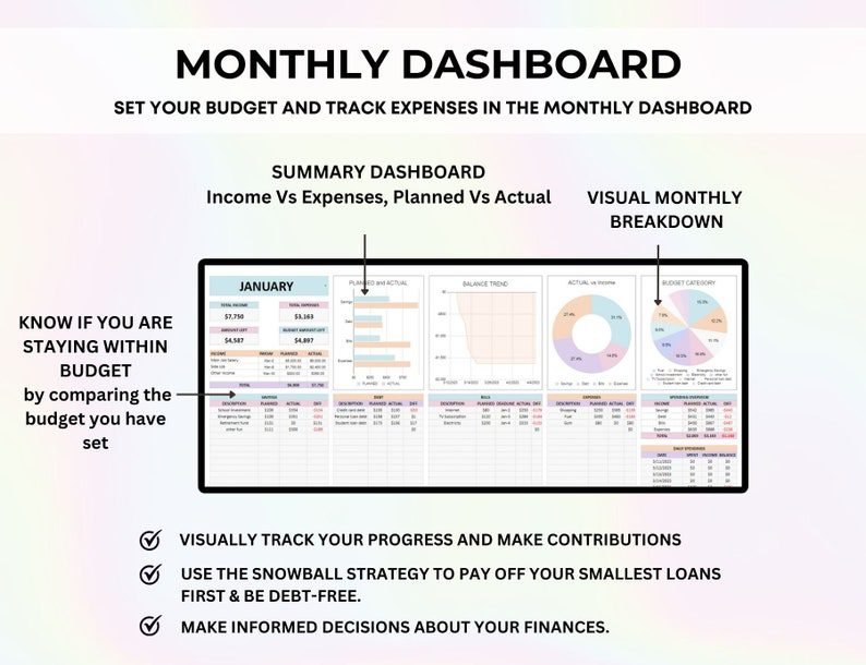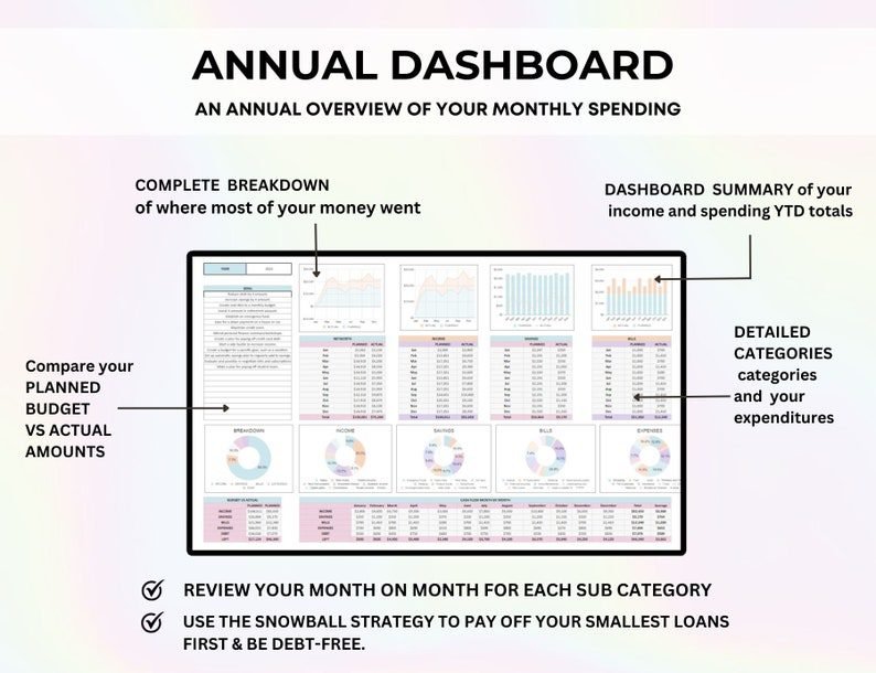 A complete annual and monthly budgeting system that helps track income, expenses, debt, savings, and net worth β all in one automated dashboard.